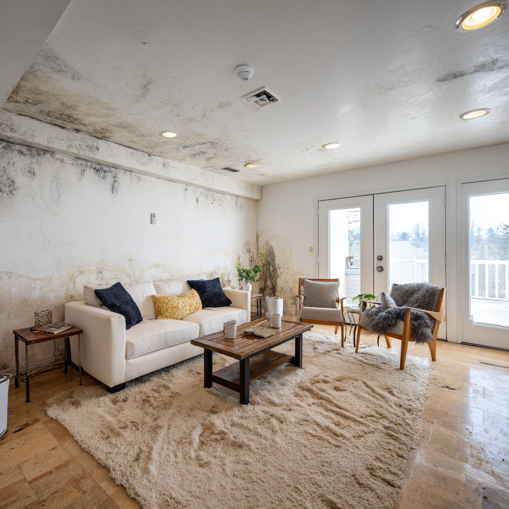 Mold growth from humidity – Ocean air and poor ventilation allow mold to spread quickly indoors.